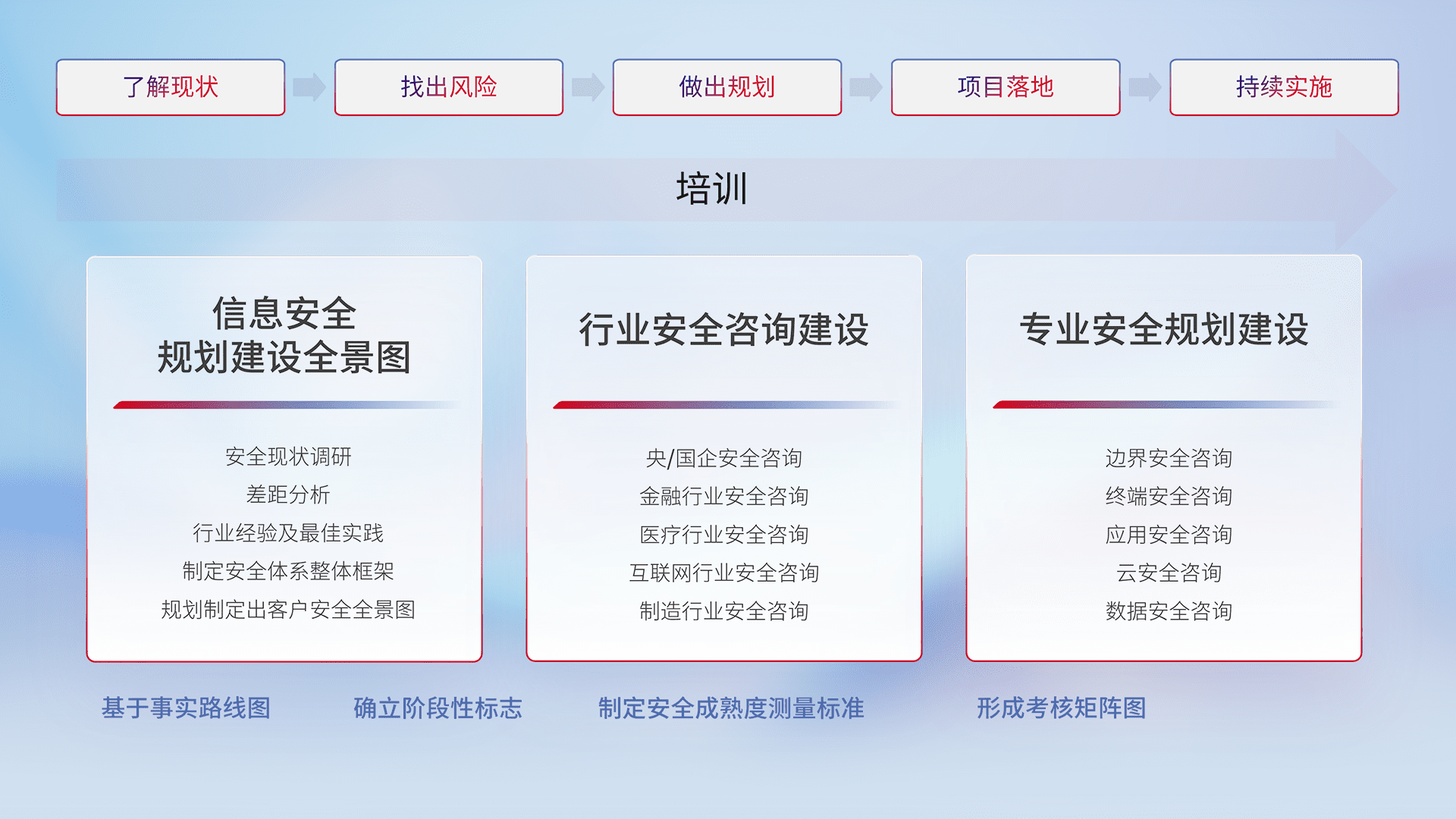 通过专业的法律咨询解读、、合规架构体现、、差异化解决方案、、测试实施支持等服务,,,为客户量身打造等保合规体系。。。